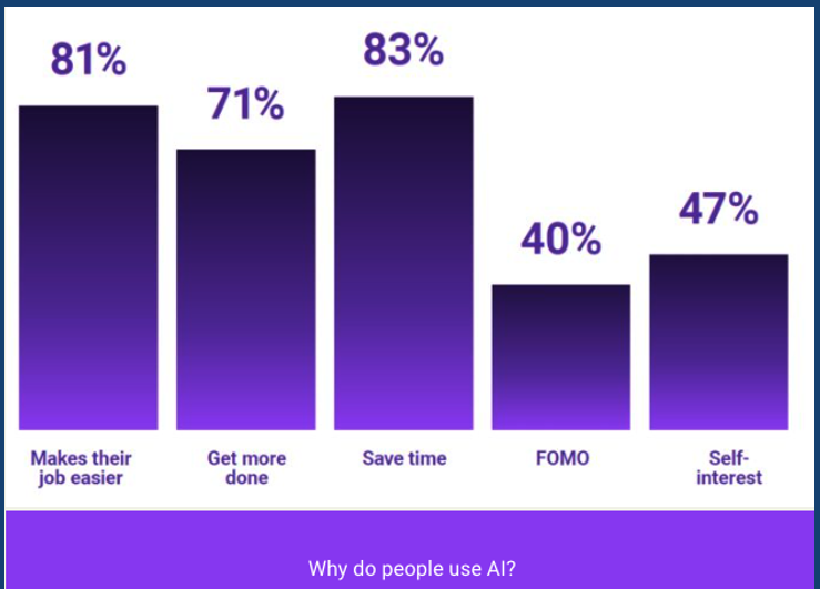 Enterprise awareness of Shadow AI usage varies. (Dialog's consumer survey found only 7% were using AI without their bosses’ knowledge.) Yet there are meaningful risks to organizations: cybersecurity, data governance, regulatory compliance, and inaccurate or unverified information. This argues enterprises should quickly give employees tools comparable to what they're already using. There's a kind of necessity to adopt AI being forced by employees, who are doing it on their own.