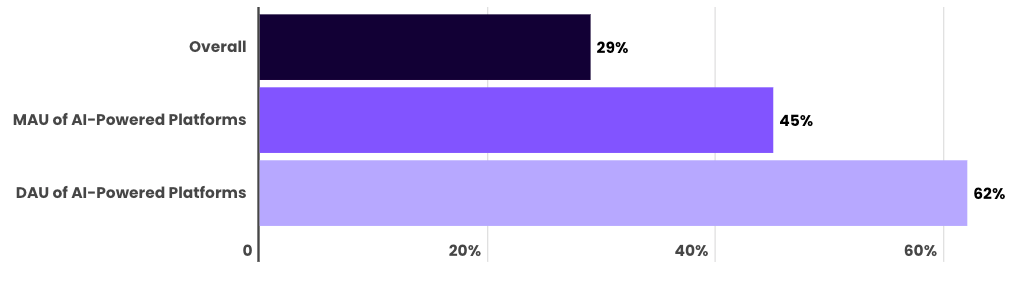 When asked whether AI usage had caused them to use traditional search less, 29% of respondents said it had. For those using AI at least monthly, 45% said they were relying on search less but the number jumped to 62% for daily users of AI tools.